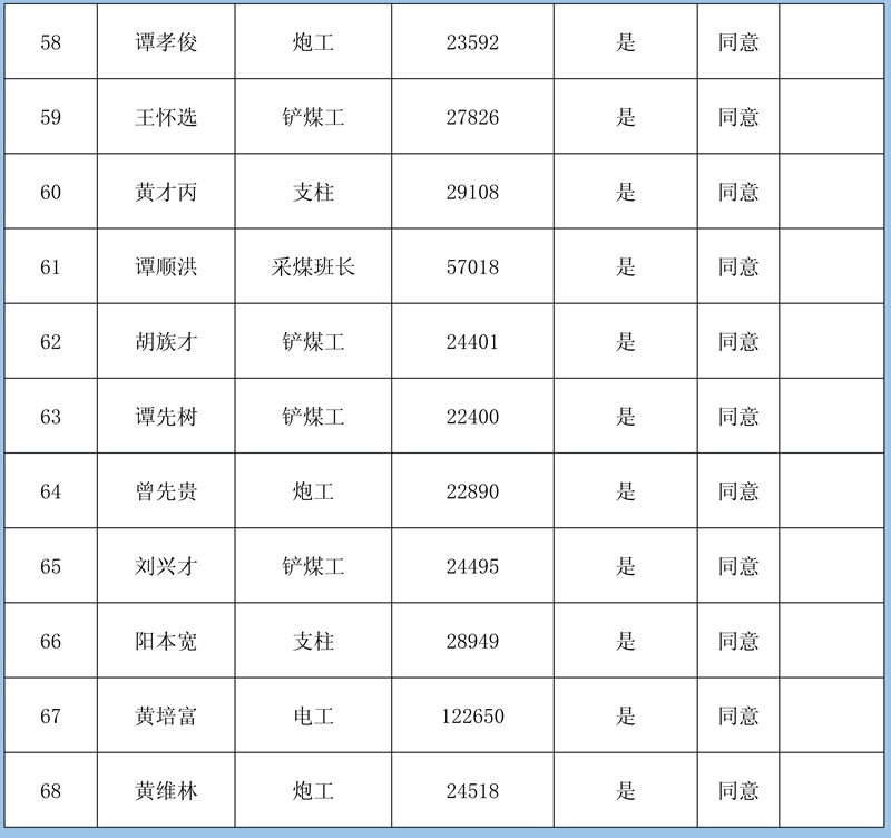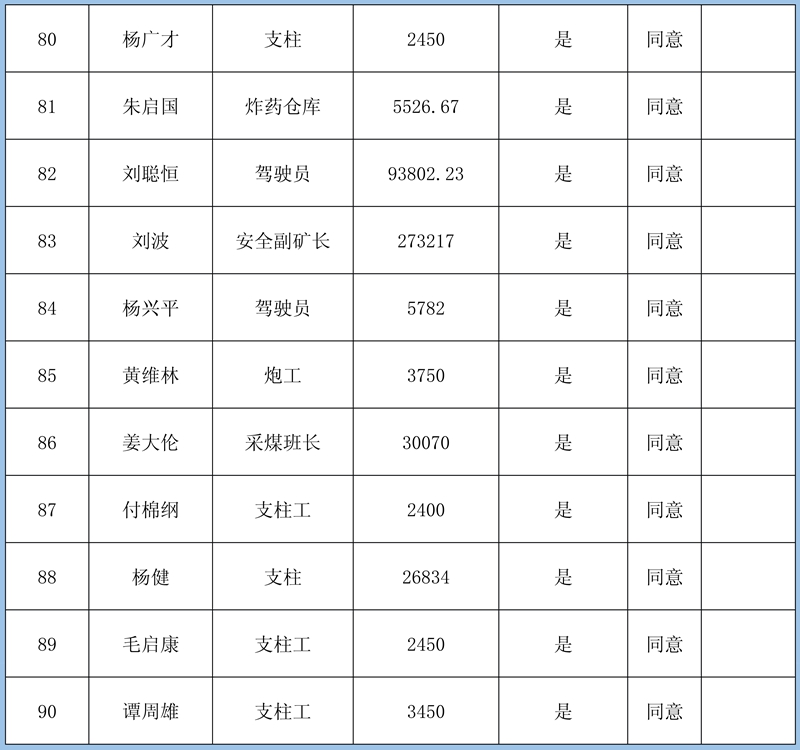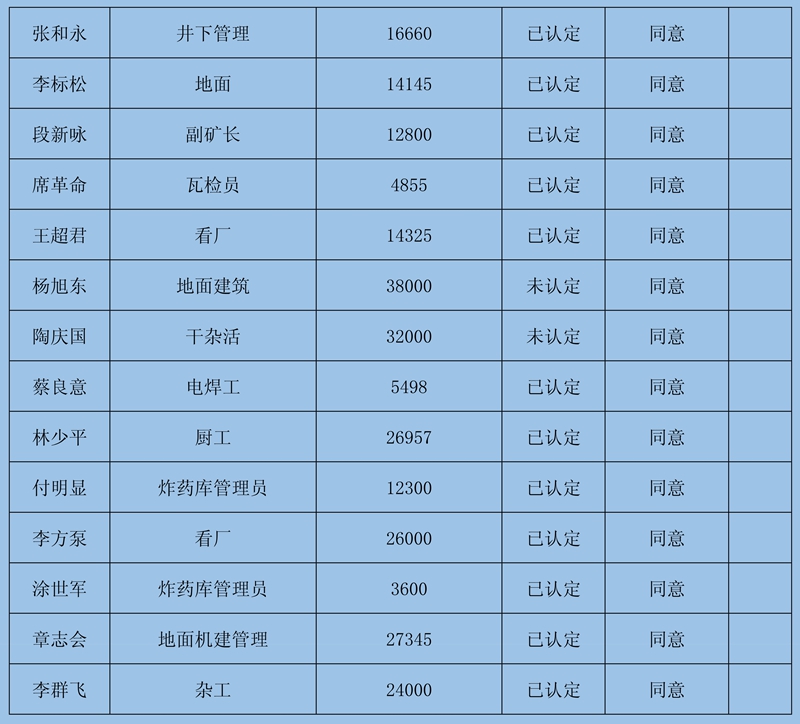 根據(jù)《鎮(zhèn)雄縣2020年直接關(guān)閉退出煤礦獎補(bǔ)資金使用方案》(鎮(zhèn)煤整治辦〔2021〕4號)精神,經(jīng)鎮(zhèn)雄縣人社局、鎮(zhèn)雄縣能源局對11對關(guān)閉退出煤礦的農(nóng)民工工資和工傷賠付進(jìn)行了清理,現(xiàn)將清理結(jié)果公示如下: