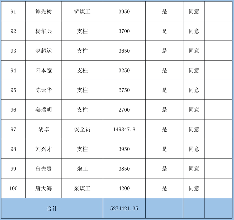 4、復(fù)核意見:建議予以確認(rèn)申報(bào)8條金額413830元;需調(diào)查核實(shí)再行確認(rèn)3條牟全書、牟全松和白啟波三人的申報(bào),當(dāng)事人未提供切實(shí)欠薪依據(jù),礦方亦不認(rèn)可;不予確認(rèn)1條劉永泉申報(bào)的欠薪經(jīng)核實(shí)為煤礦轉(zhuǎn)讓金。