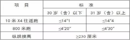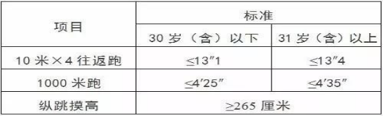 體能測試參照《公安機(jī)關(guān)錄用人民警察體能測評(píng)項(xiàng)目和標(biāo)準(zhǔn)(暫行)》進(jìn)行。具體標(biāo)準(zhǔn)如下: