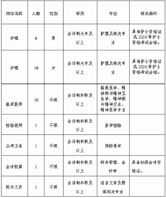 大理州第二人民醫(yī)院始建于1978年,是一所集精神衛(wèi)生預(yù)防、治療、科研、教學(xué)為一體的三級(jí)甲等精神病專(zhuān)科醫(yī)院。為滿(mǎn)足醫(yī)院業(yè)務(wù)發(fā)展的需要,現(xiàn)面向社會(huì)公開(kāi)招聘編制外專(zhuān)業(yè)技術(shù)人員36名,有關(guān)事宜公告如下: