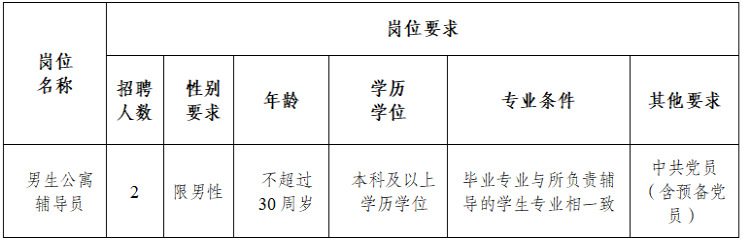 為進一步加強學校專職輔導員隊伍建設,經(jīng)學校研究,學校決定招聘2名編制外合同制專職輔導員,具體招聘有關(guān)事項公告如下: