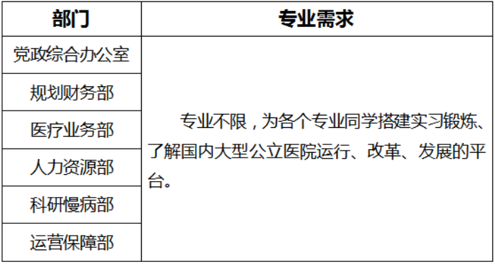 (一)實習(xí)部門和專業(yè)需求(每人可申報2個部門)