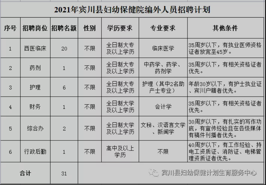 賓川縣婦幼保健院2021年面向社會(huì)公開招聘編外人員公告