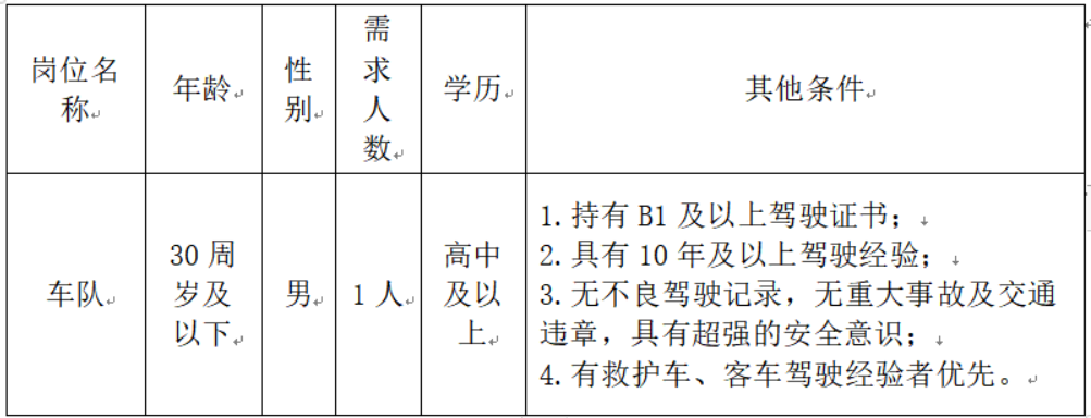 因工作需要,根據(jù)科室用人計劃,經(jīng)醫(yī)院研究決定,計劃招聘車隊駕駛?cè)藛T1名,現(xiàn)將有關招聘事宜公告如下。
