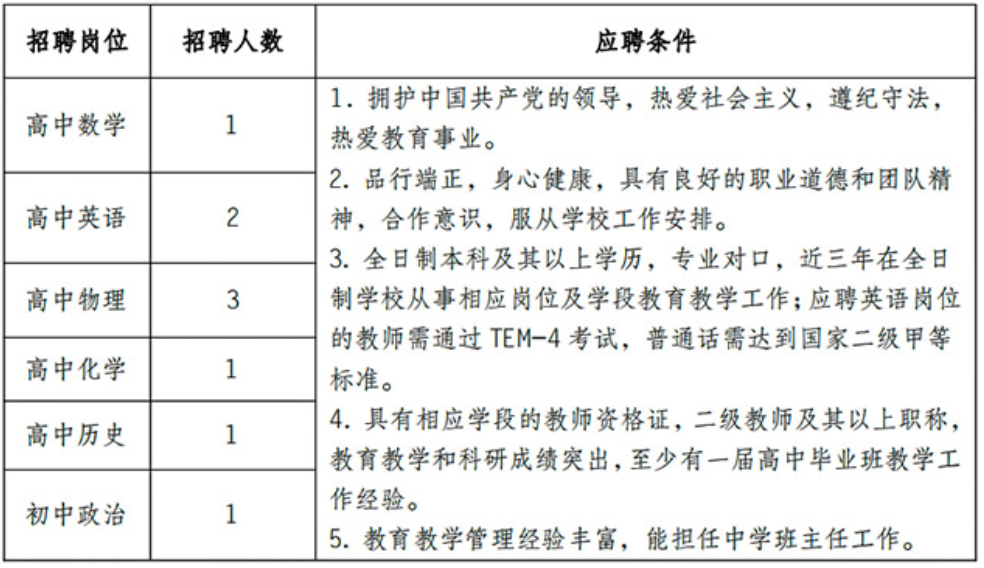 注:男教師年齡在40歲以下,女教師年齡在35歲以下。滿足以下條件之一并取得相關(guān)證件者,年齡可適當(dāng)放寬,同等條件下予以優(yōu)先考慮。