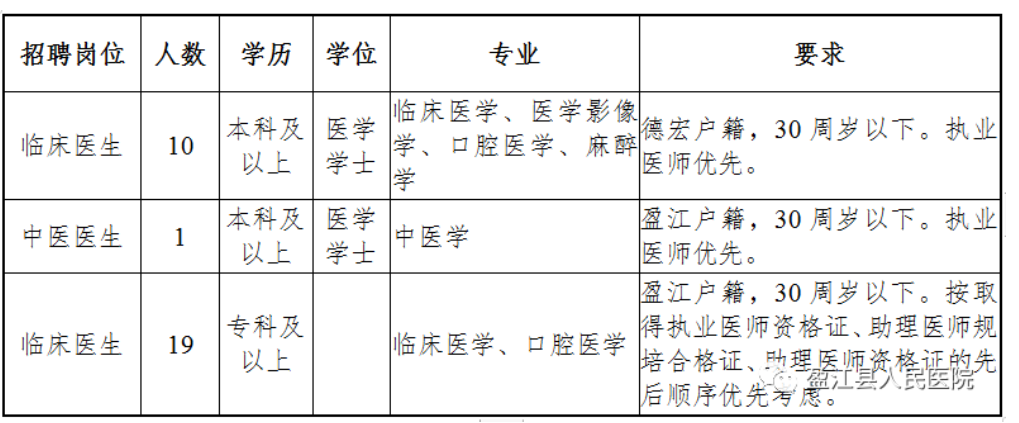 德宏州盈江縣人民醫(yī)院招聘編外合同制衛(wèi)生專業(yè)技術(shù)人員第一次公告