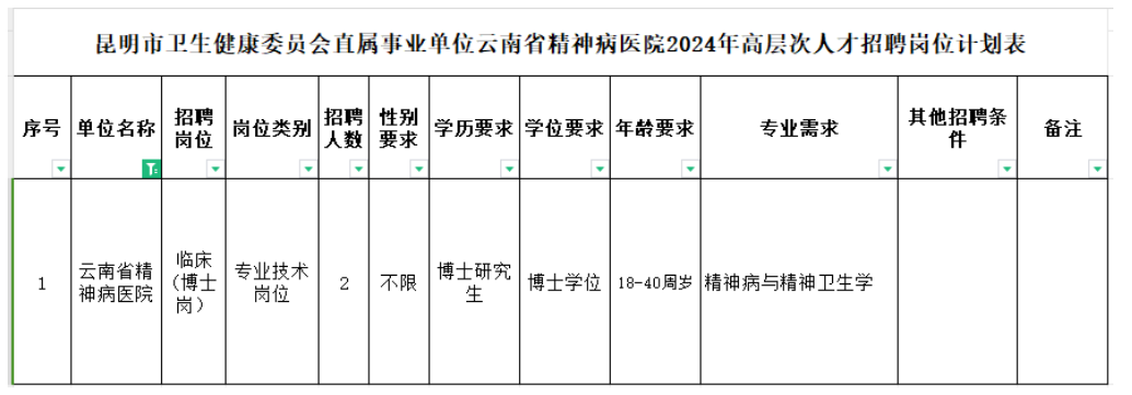 云南省精神病醫(yī)院2024年面向社會(huì)公開招聘高層次人才的公告