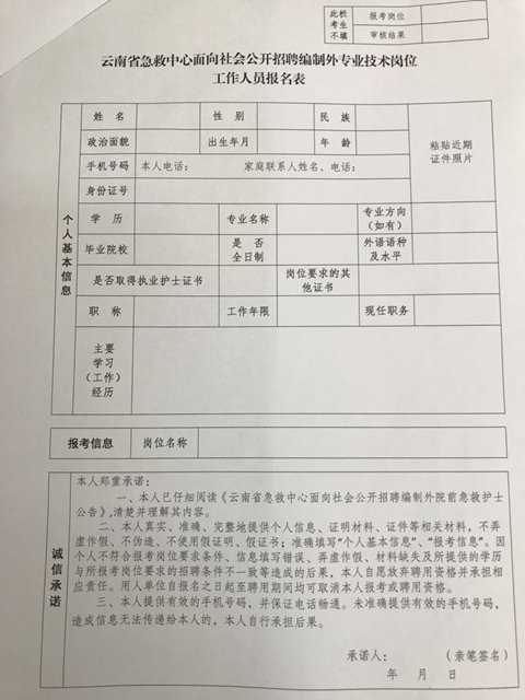 附件:云南省急救中心面向社會公開招聘編制外專業(yè)技術崗位人員報名表