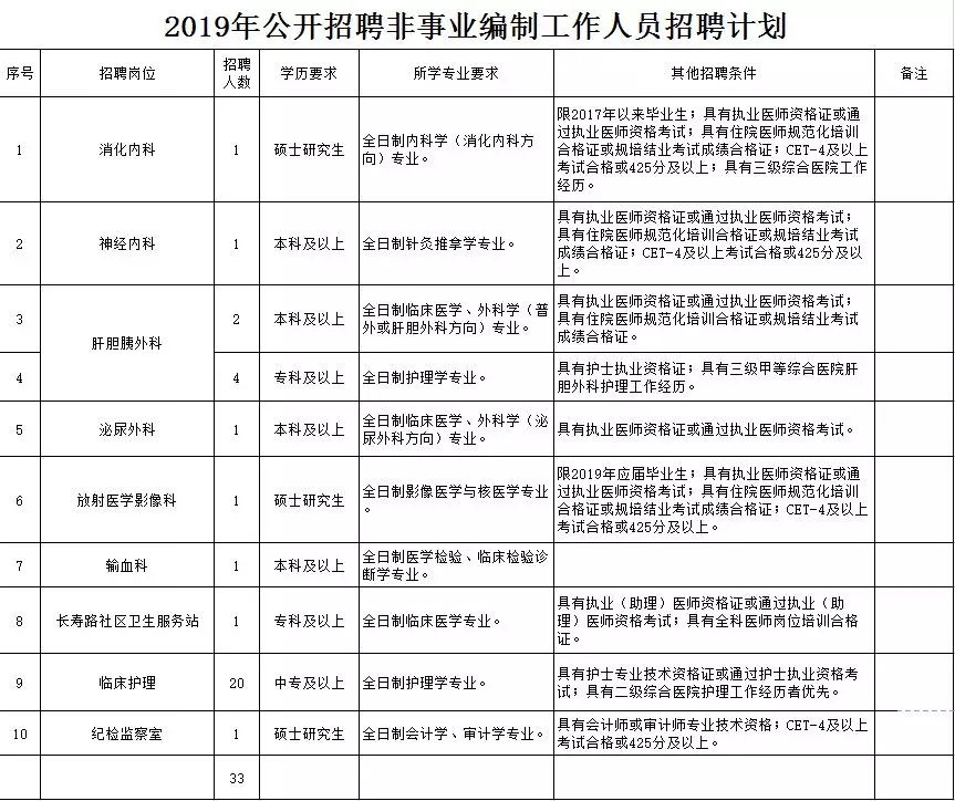 根據(jù)醫(yī)院工作需要,經(jīng)研究決定,2019年云南省第三人民醫(yī)院面向社會(huì)公開(kāi)招聘非事業(yè)編制工作人員33人,現(xiàn)將有關(guān)招聘事宜公告如下: