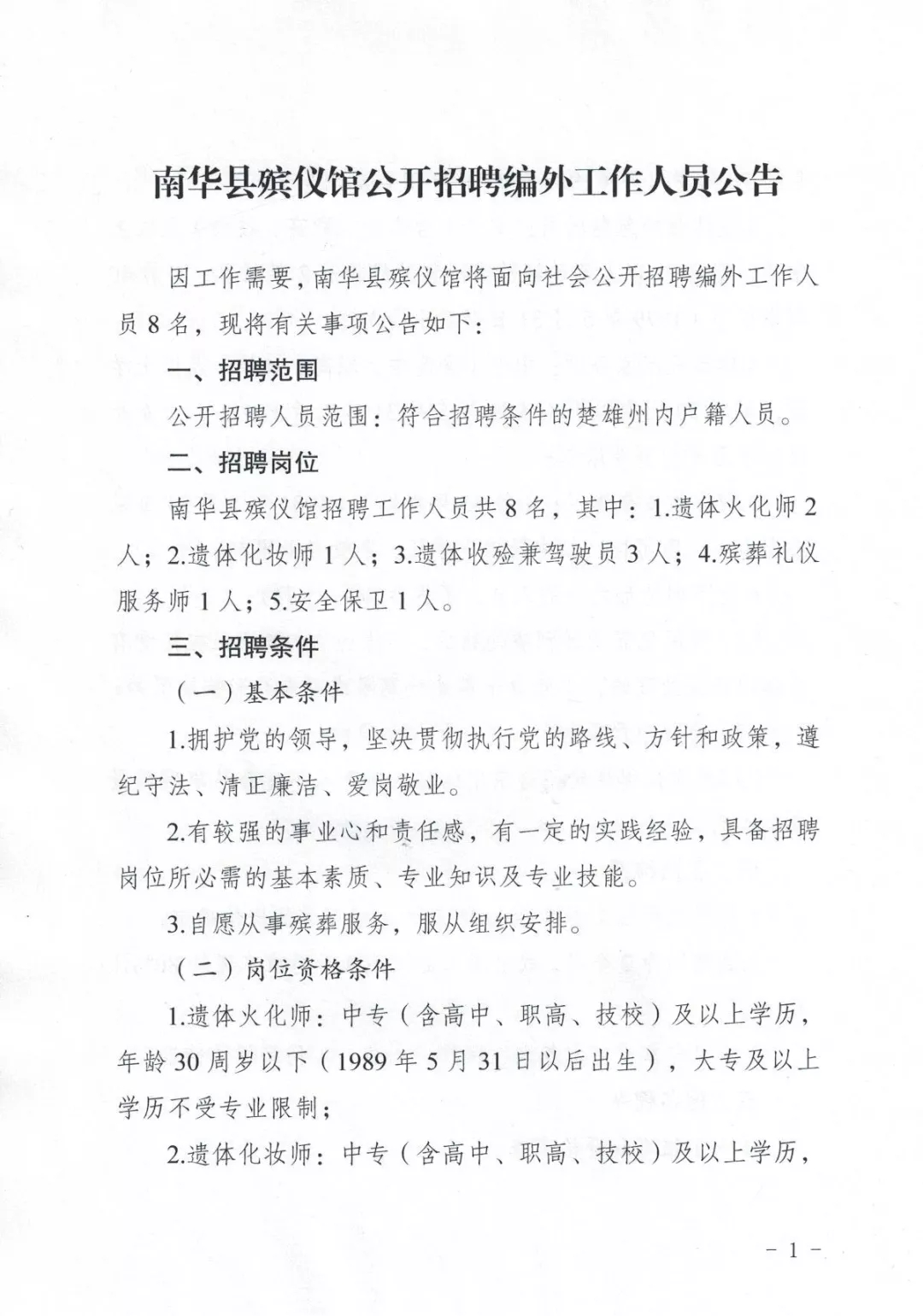 南華縣殯儀館2019年公開招聘編外工作人員公告