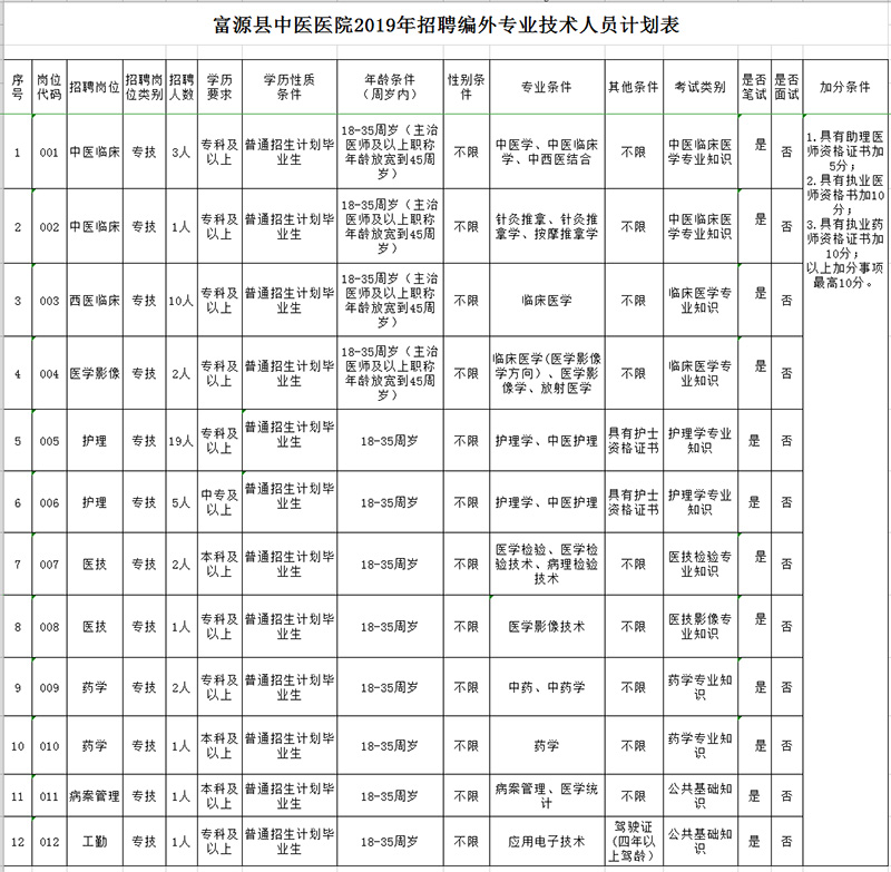 詳見附件《富源縣中醫(yī)醫(yī)院2019年招聘編外專業(yè)技術(shù)人員計(jì)劃表》。