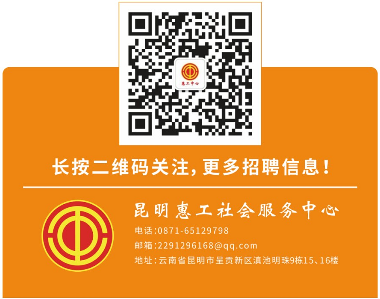 本公告最終解釋權歸昆明惠工社會服務中心所有,后續(xù)招聘相關信息請關注“惠工中心”微信公眾號。